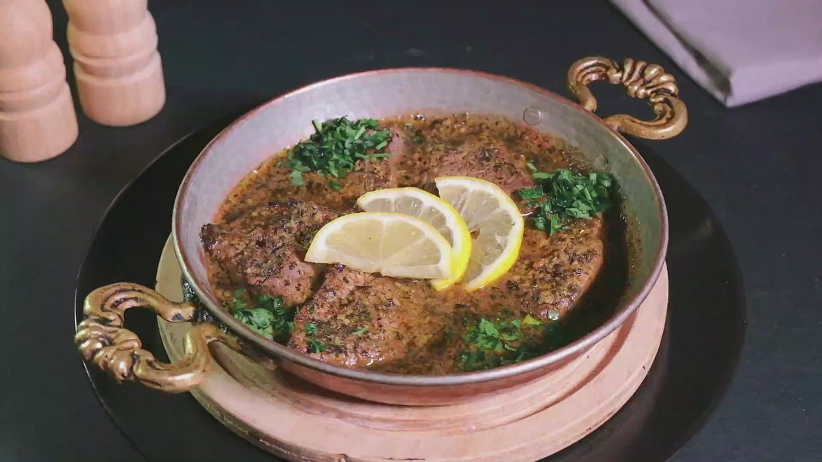 Lipie prăjită (crutoane), carne de vită, năut, sos tahina, iaurt, lămâie, usturoi, ulei de măsline Fried pita (croutons), beef, chickpeas, tahina sauce, lemon, garlic, olive oil