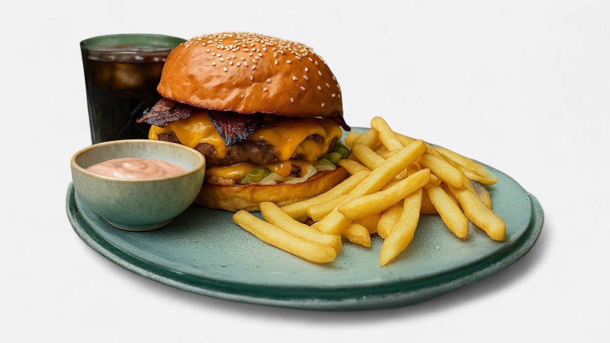 Bacon & Cheeseburger cu Cartofi Prajiti si Sos
