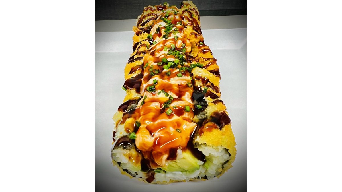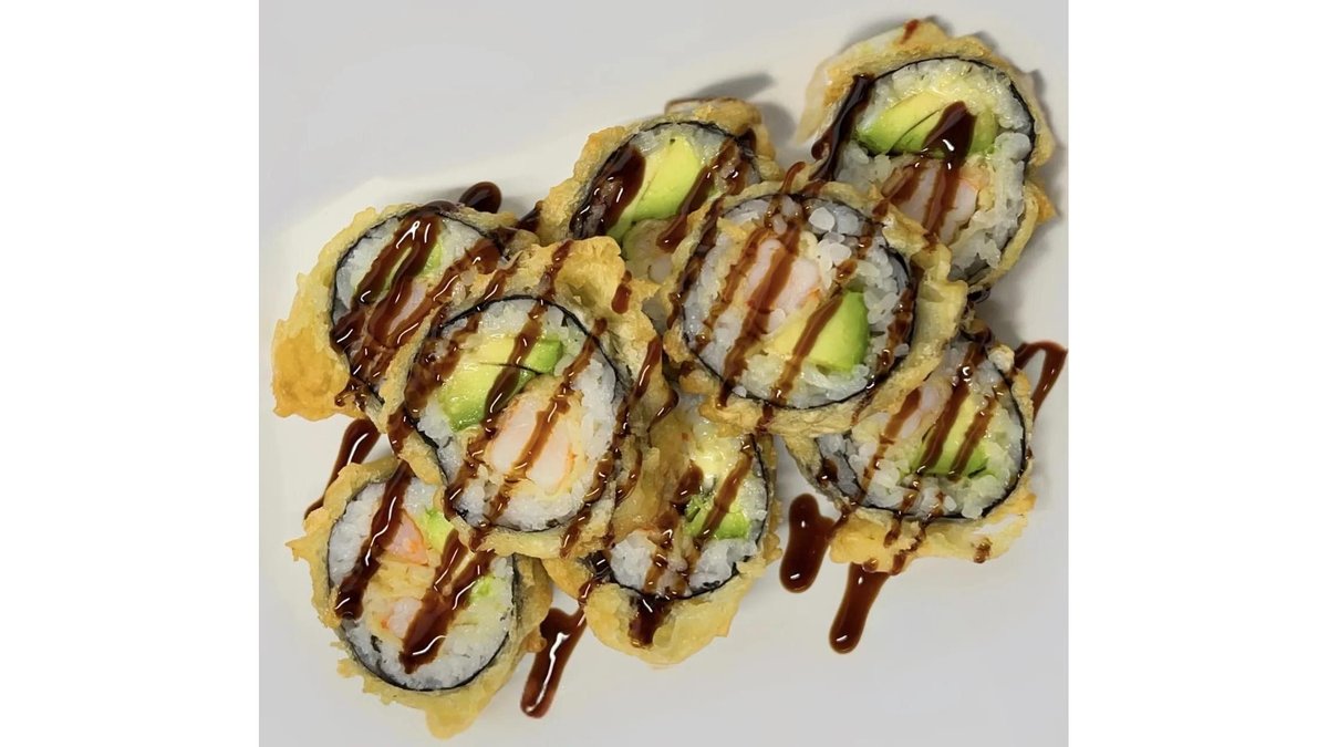 Rola Prajita, Creveti prajiti in faina tempura, avocado, maioneza japoneza, serviti cu sos unaghi175 g