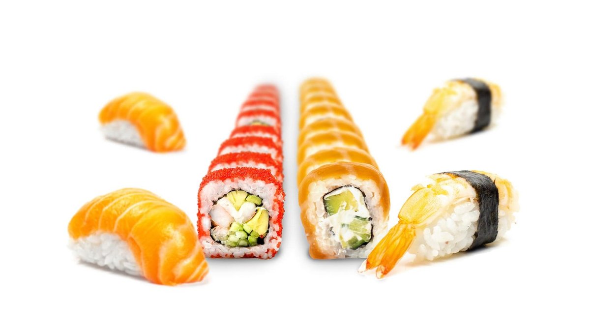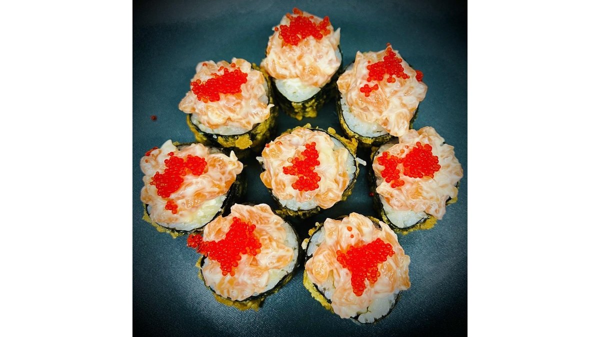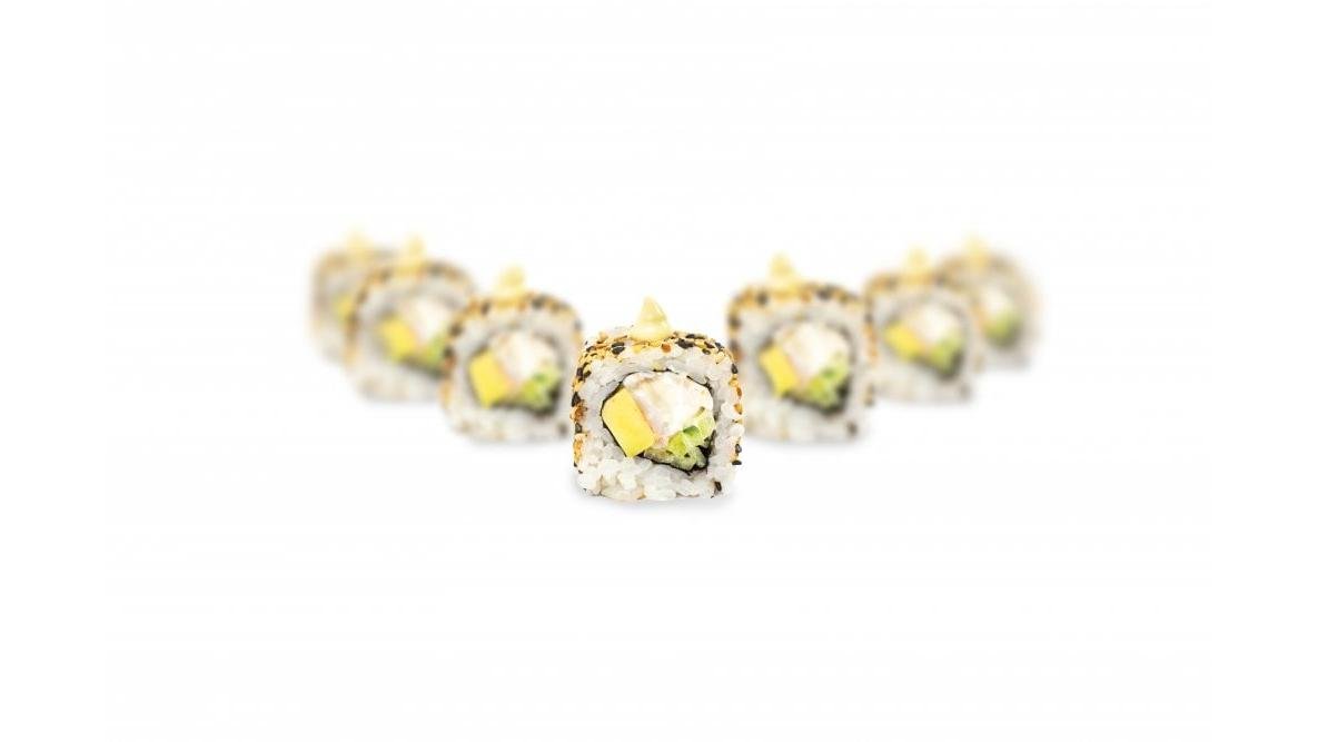 Sushi rice - 120g, tobico - 30g, shrimps - 3 pcs, avocado - 20g, cucmber - 20g, japanese mayo - 20g