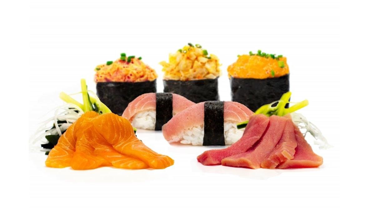 Sashimi somon, sashimi ton, nigiri ton, gunkan somon, gunkan creveți, gunkan ton