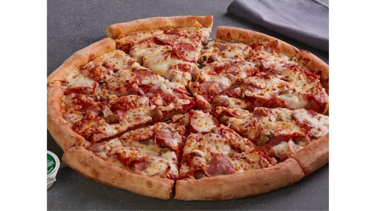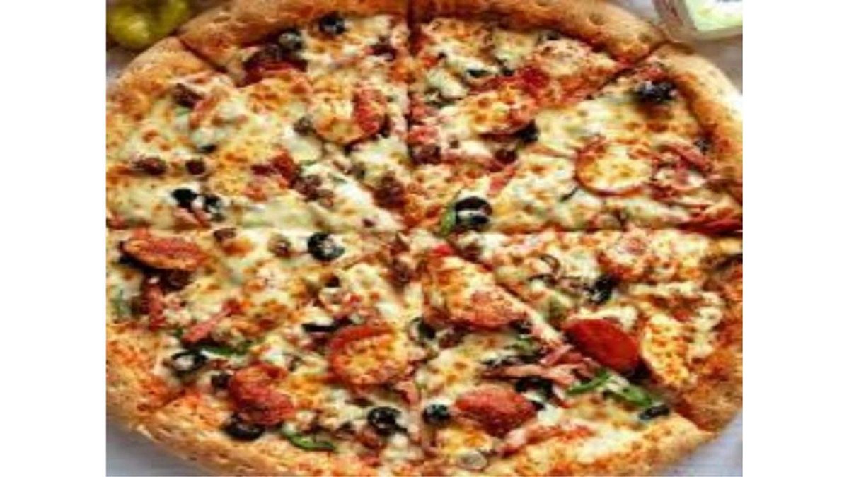 Sos de roșii, mozzarella, salam, șuncă, ciuperci, măsline, ardei