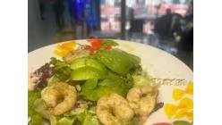 Mixt de salată, avocado, roșii,apio, creveți în sos pesto cu usturoi, ulei de măsline și lămâie 350 g