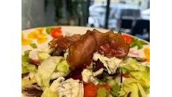 Mixt de salată,roșii, măsline, apio, ardei capia, gorgonzola, prosciutto prăjit, ulei de măsline și lămâie 350 g