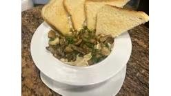 Clătite calde umplute cu cremă de brânză, ciuperci prăjite cu usturoi și pătrunjel.