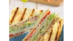 Trei feli de pâine, cașcaval,unt și șuncă praga presate la cald 250 g
