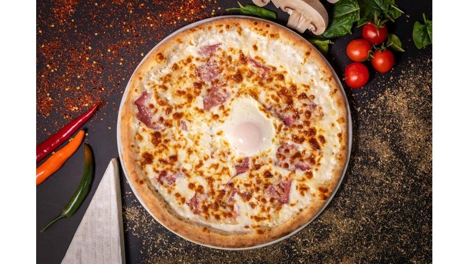 Blat pizza, gran cucina, bacon, ou, parmezan, mozzarella. 1100 g