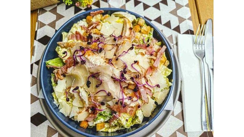 Salată Romaine, piept de pui la grătar, bacon, parmezan, crutoane, dressing Caesar - 340g