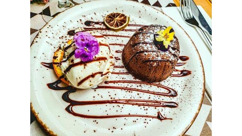 Sufleu de ciocolată, servit cu înghețată de vanilie - 250g