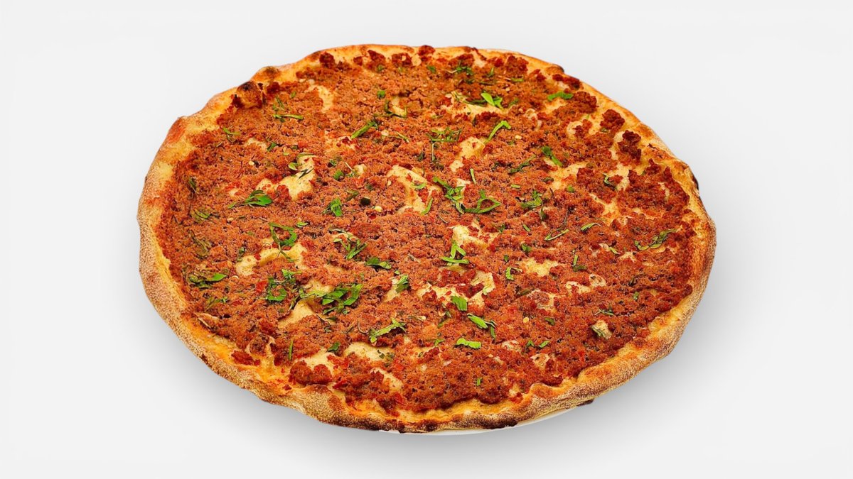Lahmajun {aluat , amestec lahmajun preparat (carne de vita, legume tocate si condimente), asezonat cu lamaie si ardei iute murat}