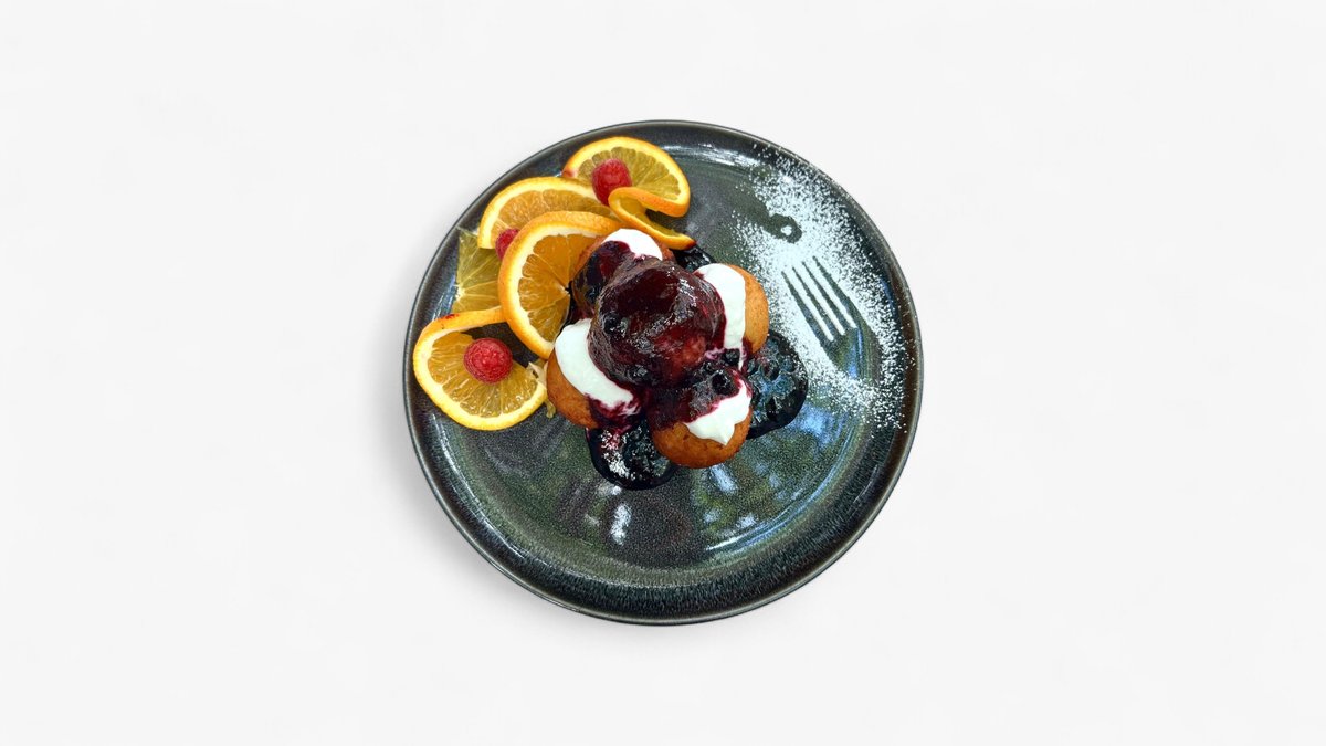 Ingrediente: Branza 140 g, zahar 15 g, vanilie 1 ml, ou 14 g, sare 2 g, praf de copt 2,5 g, samtana 60 g, dulceata de afine 60 g.