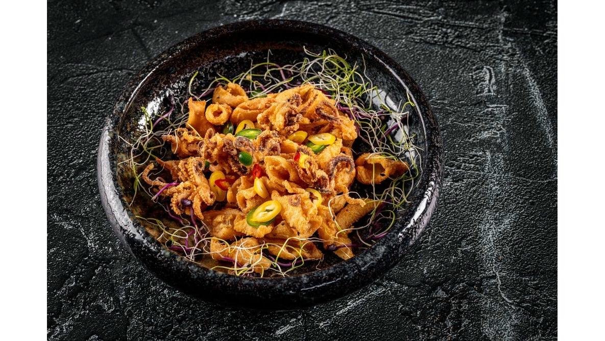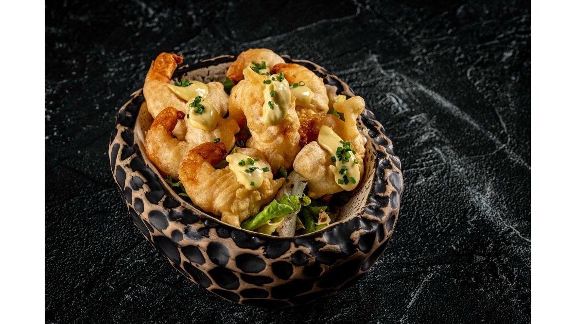 Calamari baby prăjiți în tempura, serviți cu maioneză picantă 150 g