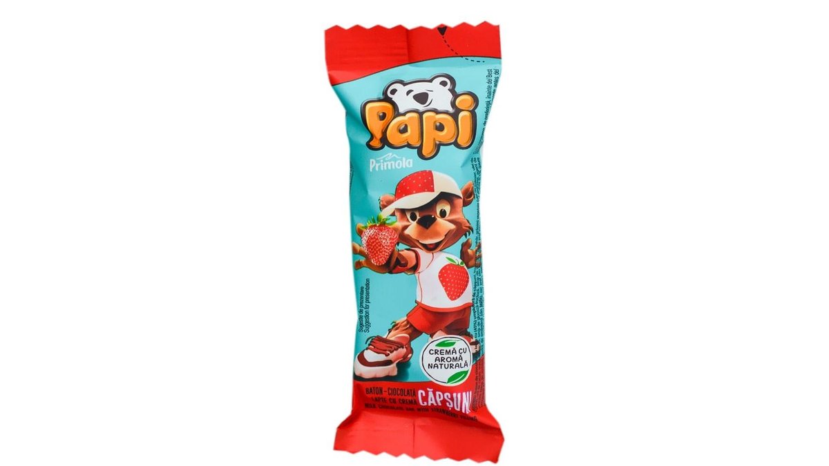 Papi Baton de ciocolata cu lapte si crema de capsuni 26.8g