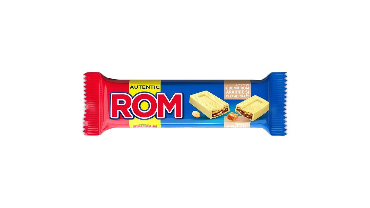 Rom Autentic Baton de ciocolata alba cu crema de caramel sarat, rom si arahide 44g