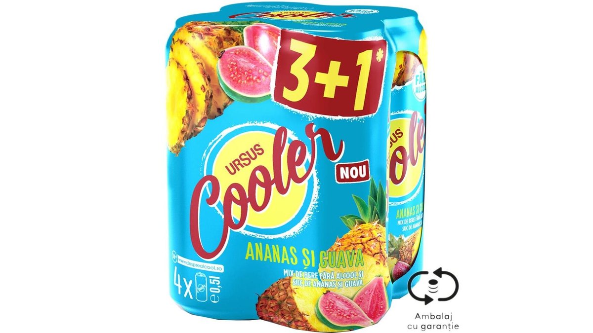 Ursus Cooler Bere fara alcool cu suc de ananas si guava 3+1x0.5L
