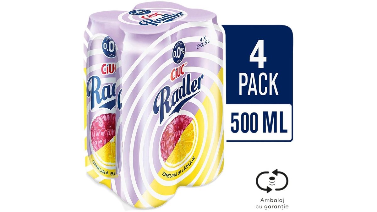 Ciuc Radler Bere fara alcool cu zmeura si lamaie 4x0.5L