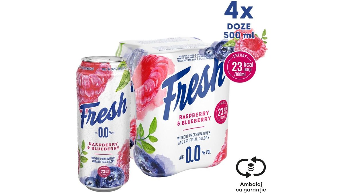 Fresh Bere fara alcool cu suc de zmeura si coacaze 4x0.5L
