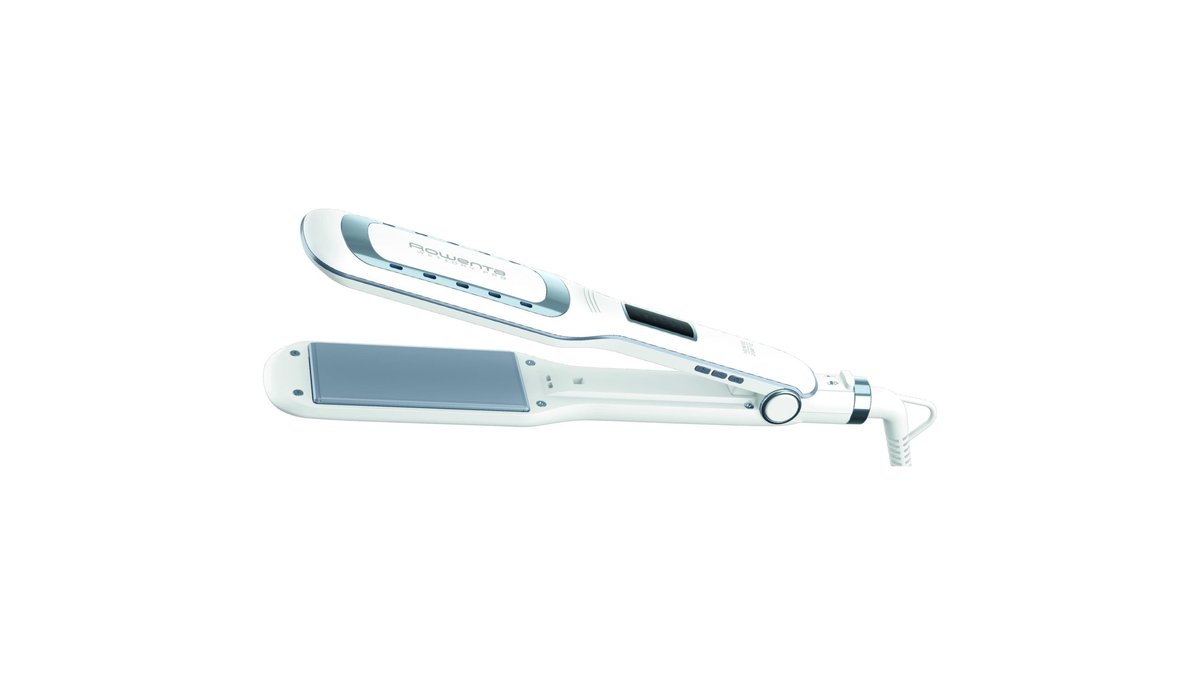 Placa de indreptat parul Rowenta Wet & Dry Pro SF5010F0, invelis Nano Ceramic, generator de ioni, ecran LCD, 6 trepte de temperatura, alb/argintiu