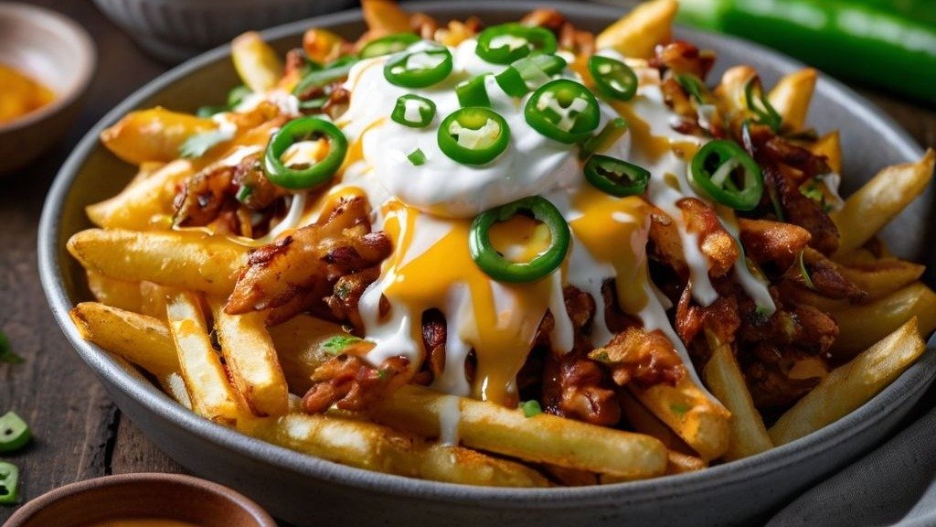 350g Cartofi prăjiți 200 g, Pulled pork 80g, Sos cheddar 40 g, Sos BBQ 30 g, Ceapă verde 20 g Valori nutritionale per 100 gr Kj 121/ Calori 29/ Proteine 0,5/ Lipide 1,3,/ Ags 0,6/ Glucide 3,7/ Zaharuri 0,6/ Fibre 0,1/ Sare 0,2 ALERGENI Substanțe care cauzează alergii sau intoleranta: Cereale care conțin gluten spell grau și produse derivate, ou și produse derivate ,telina și produse derivate,mustar și produse derivate, semințe susan și în derivate, lapte și produse derivate,soia și produse derivate * Provenit din produse congelate.