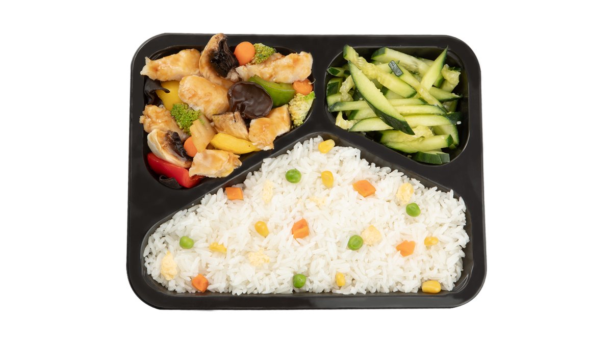 Pui cu ciuperci 130 g + Pui cu legume 130 g + Orez cu legume 130 g + Orez picant 130 g + Salata de castraveti cu usturoi 130 g + Salata thai 130 g + Pachetele de primavara 2 buc Gramaj total: 800 g