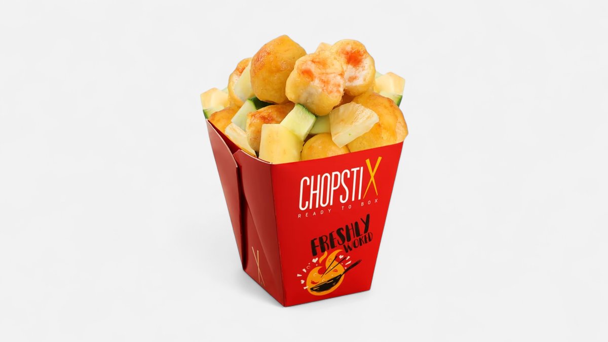 Noodles 230 g + creveti pane 80 g + sos cald 90 g la alegere Gramaj total: 400 g