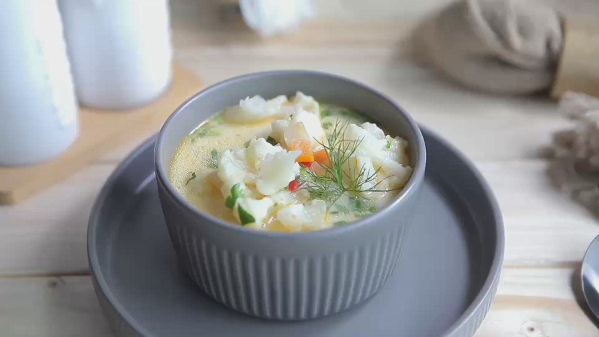 Ciorba de conopida,ficatei de pasare cu sos de ceapa,cartofi piure cu unt,salata de varza alba,chifla