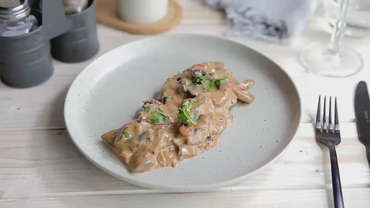 Cotlet de porc,cartofi wedges,smantana de gatit,ciuperci,rosii cherry - 450gr
