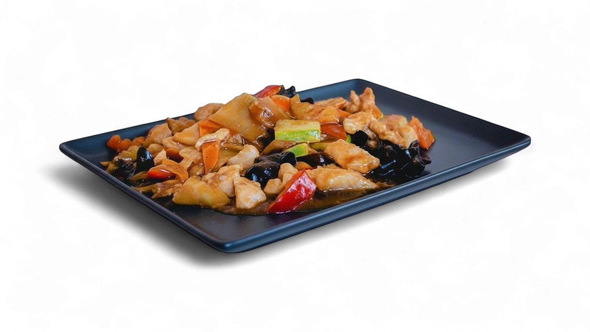 Pulpă de pui cu bambus și ciuperci „urechi de lemn”