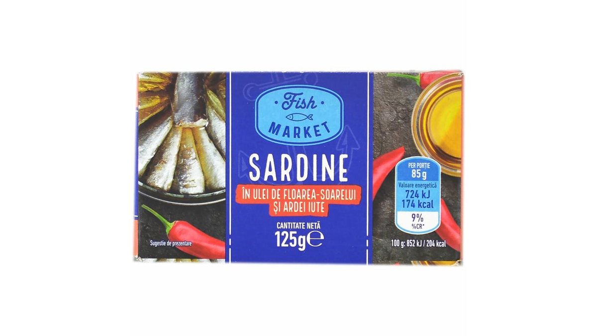 Fish Market Sardine in ulei de floarea soarelui si ardei iute 125g