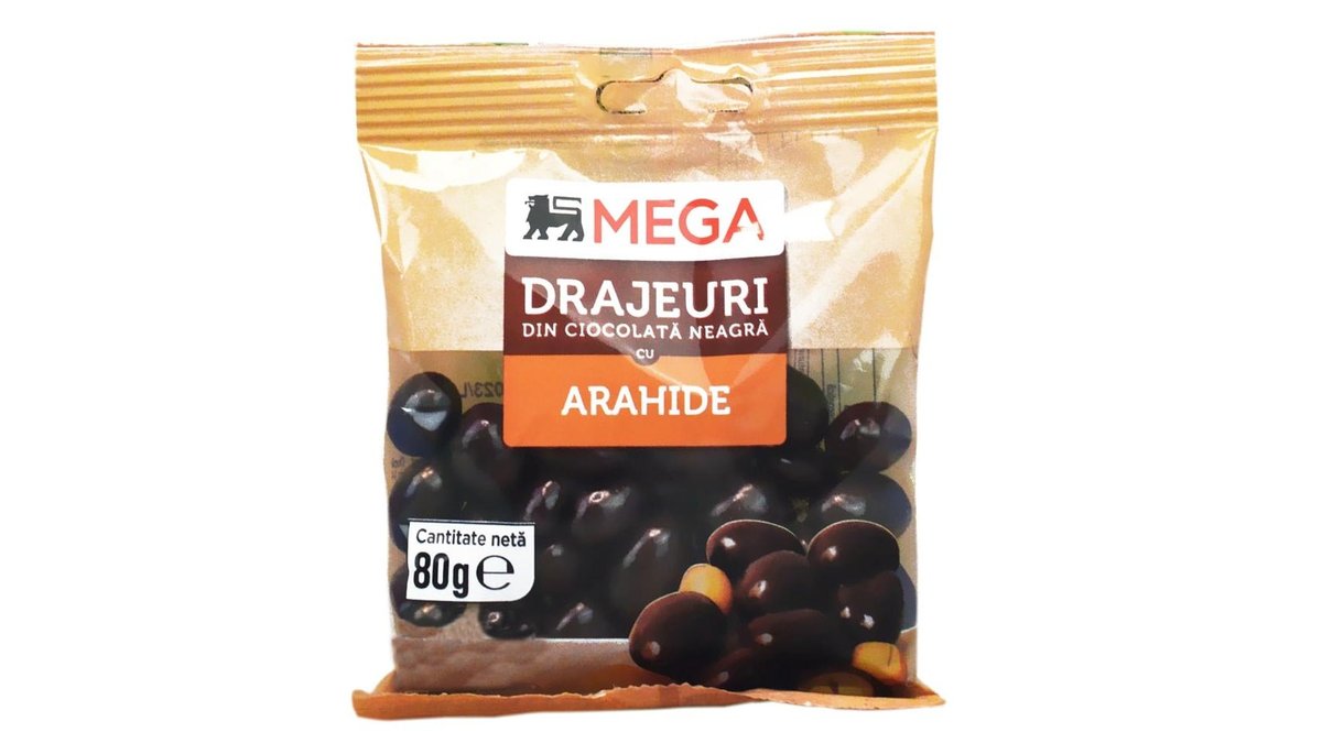 MEGA Drajeuri din ciocolata neagra cu arahide 80g