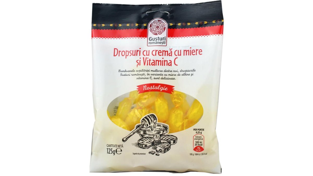 Gusturi romanesti Dropsuri cu crema cu miere si vitamina C 125g