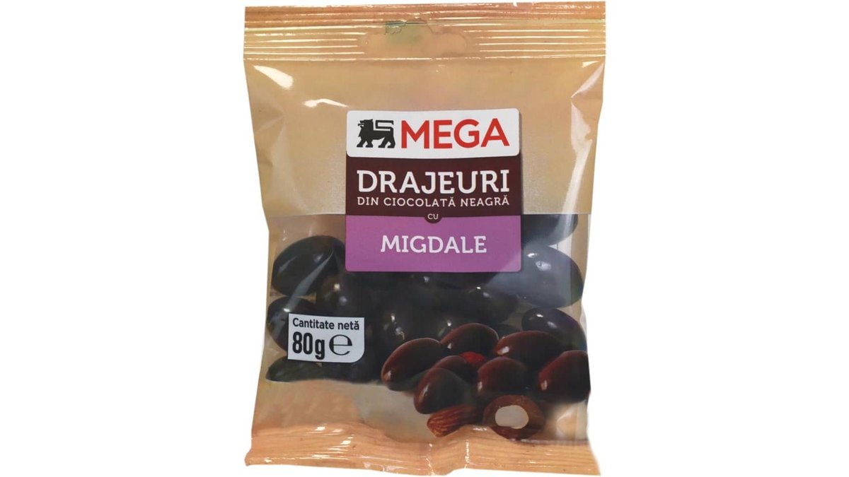 MEGA Drajeuri din ciocolata neagra cu migdale 80g