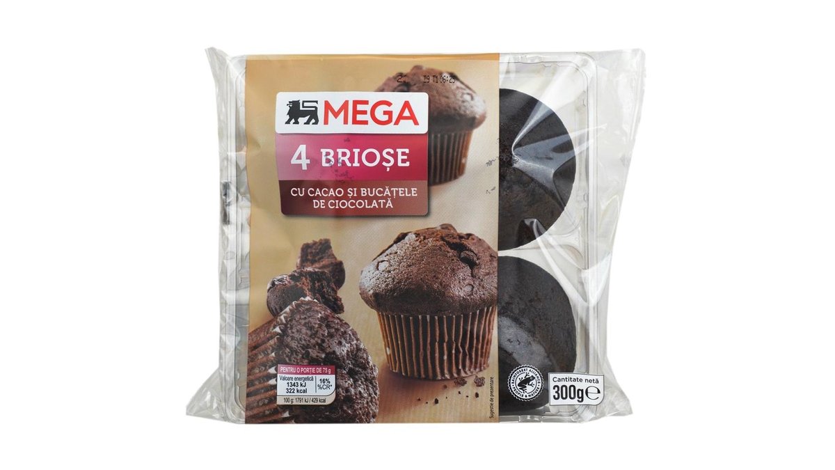 MEGA Briose cu cacao si bucatele de ciocolata 4x75g