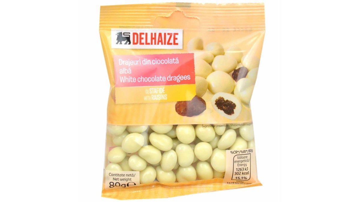 MEGA Drajeuri din ciocolata alba cu stafide 80g
