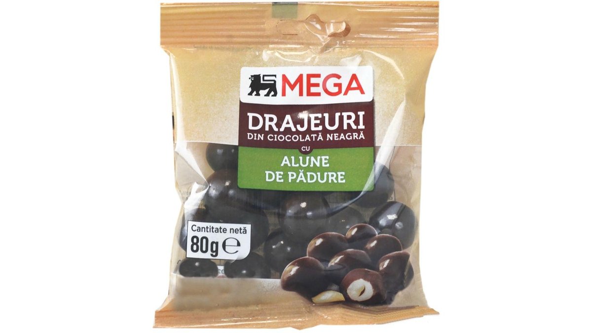 MEGA Drajeuri din ciocolata neagra cu alune de padure 80g