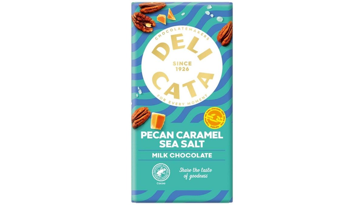 Delicata Ciocolata cu lapte cu pecan, caramel si sare de mare 150g