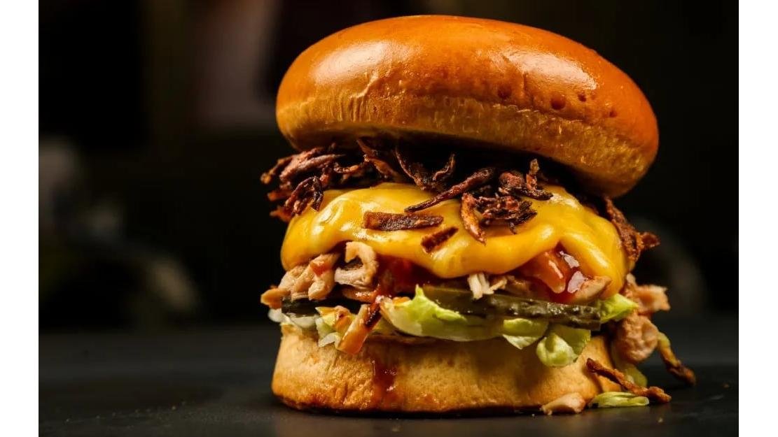 Chifla, vita black angus, cheddar, bacon, jalapeno, ceapa caramelizata la alegere, salata verde, rosie, castraveti murati, sos picant, sos bbq