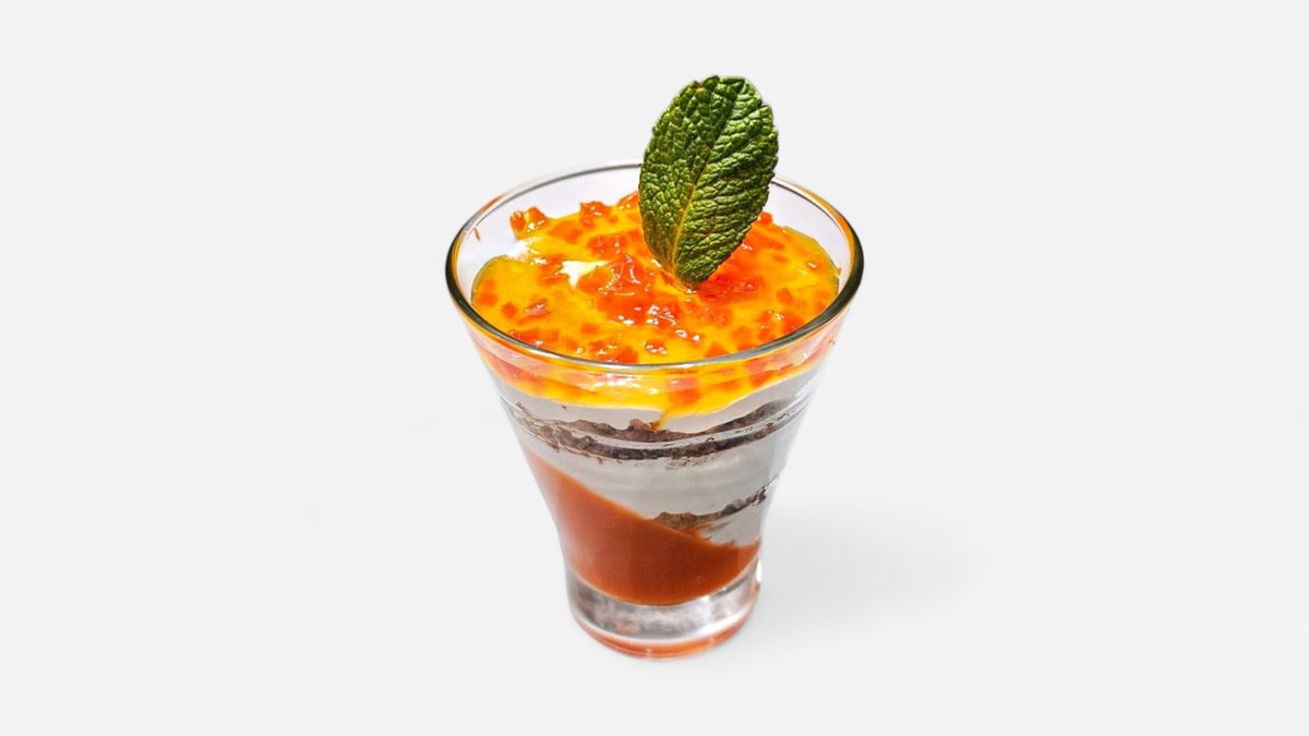 Blat cu morcov (faina, zahar brun, morcov, ou, ulei de floarea soarelui, scortisoara, amidon), crema de frisca si mascarpone (frisca lnaturala, zahar, esenta de vanilie, ciocolata alba, mascarpone) si jeleu homemade de morcov (suc de morcov, suc de portocale, miere, zahar, gelatina) - 110g