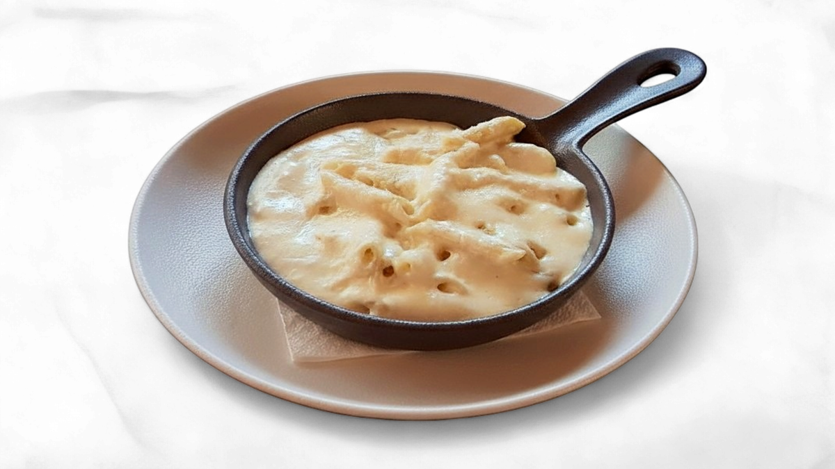 Penne, smântână, gorgonzola, cașcaval afumat, parmezan, brânză feta, nucșoară și piper negru- 500g