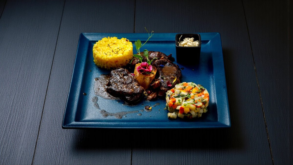 Rasol de vită, rădăcinoase, risotto cu șofran și hrean- 550g