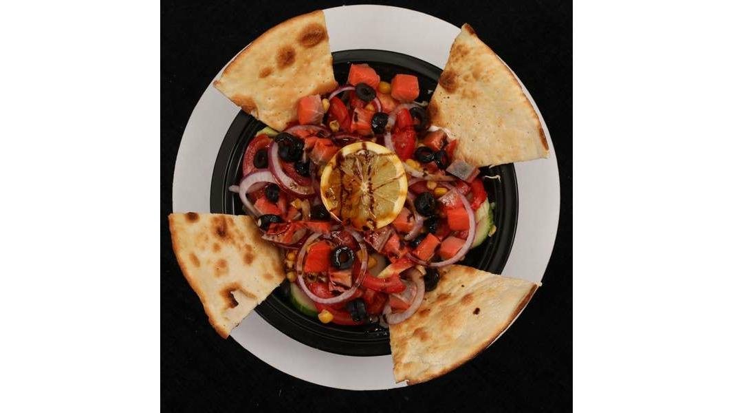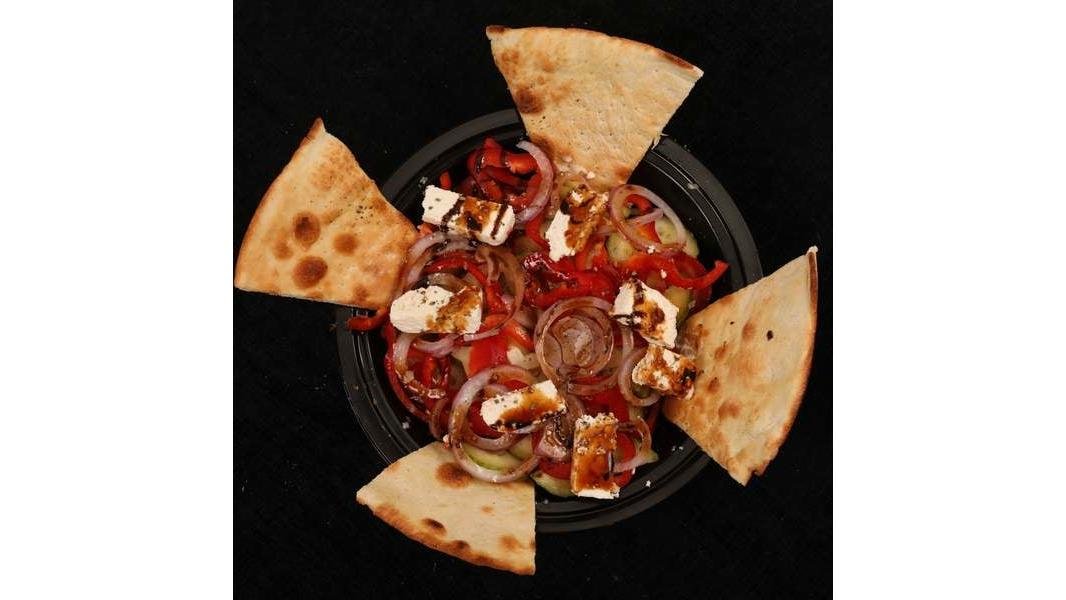 foccacia, varza, salata verde iceberg, castraveti, rosii, ardei gras, masline, ceapa, lamaie 520g