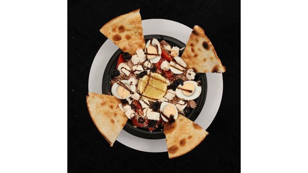 foccacia, varza, salata verde iceberg, castraveti, rosii, ou, ton, branza, masline, maioneza, lamaie 600g