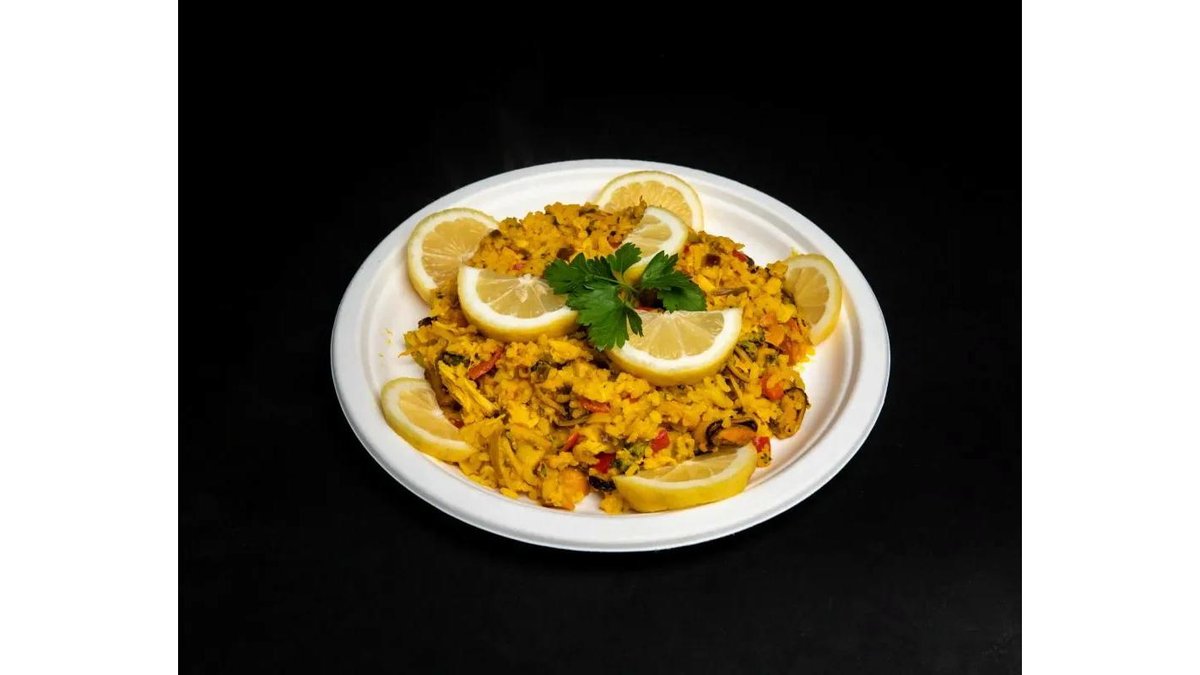 orez, sofran, ceapa, ardei gras, broccoli, frutti di mare, piept de pui, scoici, lamaie, ulei masline 550g