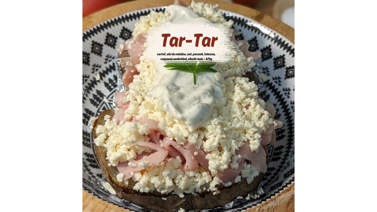 cartof, ulei de masline, unt, piept de pui, telemea, sos tar-tar, masline, castraveti 640g