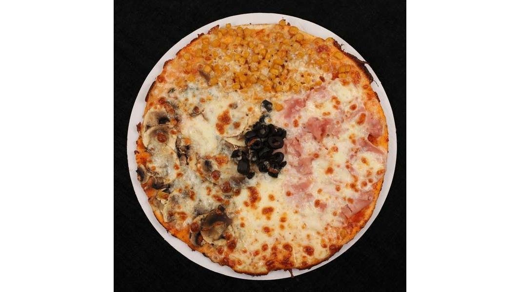 30cm Blat, sos rosii, mozzarella, sunca, ciuperci, porumb, masline