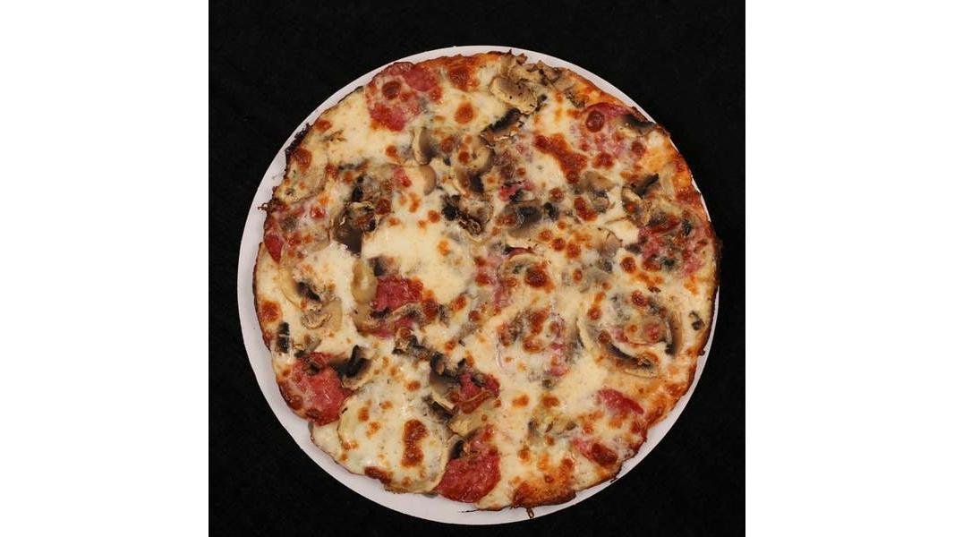 30cm Blat, sos rosii, mozzarella, salam, ciuperci