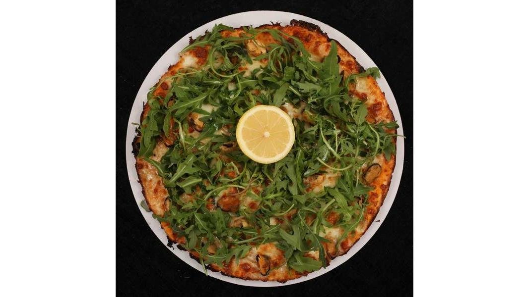 30cm Sos rosii, mozzarella, scoici, salata rucola