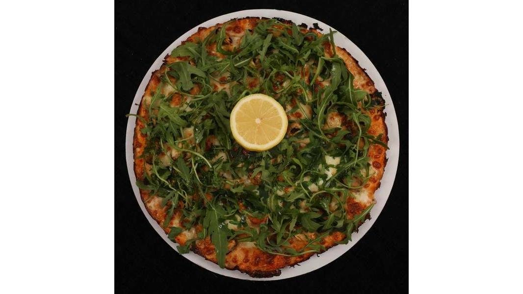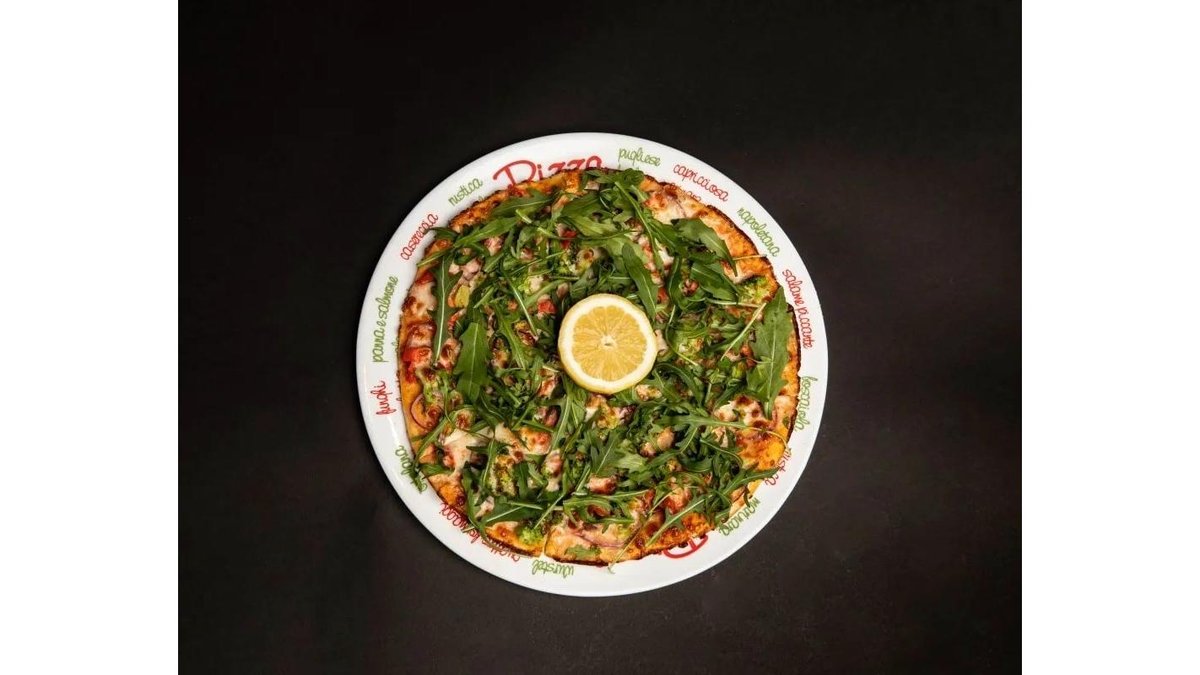 30cm Sos rosii, mozzarella, broccoli, ceapa, somon fume, rucola, lamaie