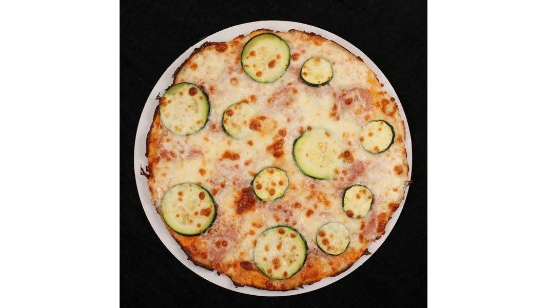 30cm Sos rosii, mozzarella, sos usturoi, sunca, dovlecel, parmezan