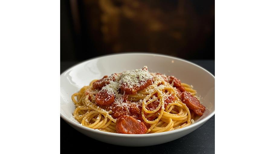 spaghete, ulei de masline, pepperoncino, usturoi, patrunjel, parmezan 450g Poza cu titlu informativ